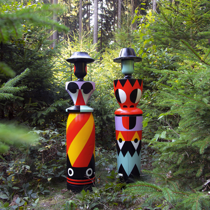 We painted these two wooden guards for the entrance of the toy museum in Hanau.